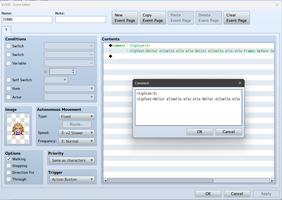 {A:1}or{ACTOR:1}- Actor name by ID{P:0}or{PARTY:0}- Party member (0=leader){V:10}or{VAR:10}- Variable value